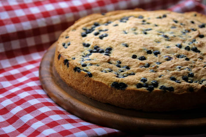 Se separă albușurile de gălbenușuri. Albușurile se bat spumă cu zahărul. Gălbenușurile și praful de copt se freacă bine. Se amestecă cu albușurile bătute spumă. Se adaugă făina și nuca de cocos. Compoziția se toarnă în formă de tort. Se presară cu afine. Se dă la cuptor încins la 180 de grade timp de 20-25 de minute.