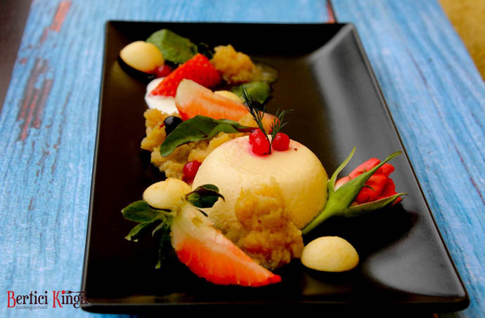 Formele se stropesc cu unt. Frișca, rachiul și îndulcitorul se pun pe foc (Temperatura maximă să nu depășească 50 de grade). Ouăle se bat după care se adaugă la compoziția cu frișcă după ce aceasta s-a răcit. Compoziția se toarnă în forme. Se așează într-un vas înalt astfel încât să se poată turna apă la fund, după care se lasă la cuptor încins la 160-170 de grade timp de 30 de minute. După ce s-au răcit se scot din vas și se servesc.
