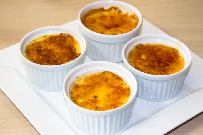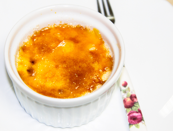 Se încinge laptele cu frișca la 50 de grade. Se freacă ouăle cu zahărul, după care se adaugă, treptat, laptele cu frișca. Într-o tavă cu pereții înalți se toarnă apă (aproximativ 1 cm înălțime) și se așează în ele boluri rezistente la temperatură care se umple cu compoziția. Tava se dă la cuptor încins la 160 de grade timp de 30-40 de minute. Se lasă la răcit. Înainte de servire se presară cu zahăr ce se caramelizează cu torta cu gaz.