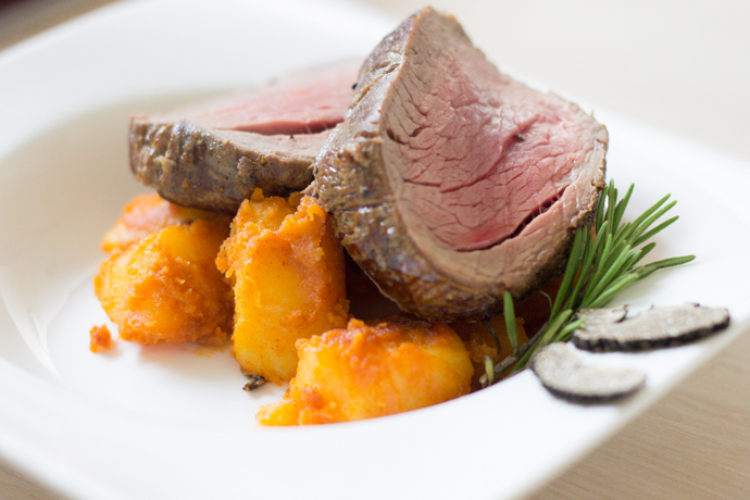 1,5 kg muschi de vita, carpaccio de trufe, sare,piper, vin rosu