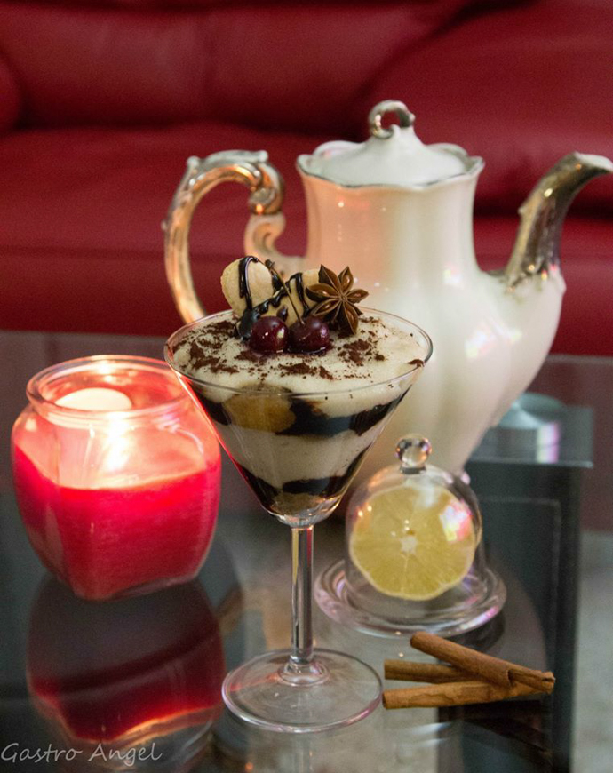 Din lapte, gris, zahăr, aromă de vanilie și scorțișoară se prepară gris în lapte. Se pregătesc paharele. Se fierbe cafeaua și se amestecă cu romul. Pișcoturile se înmoaie în compoziția cu cafea și se așează în pahare. Se stratifică: un strat pișcoturi, deasupra sos de ciocolată, un strat de gris.