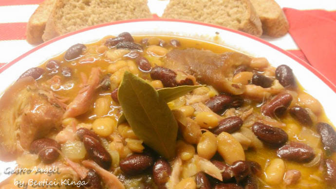 Ceapa si usturoiul se toaca marunt si se prajesc in putin ulei. Cand s-au prajit adaugam fasolea, sunca maruntita, condimentele si se pun rosiile si apa. Se fierbe o jumatate de ora pana apa se evapora.
