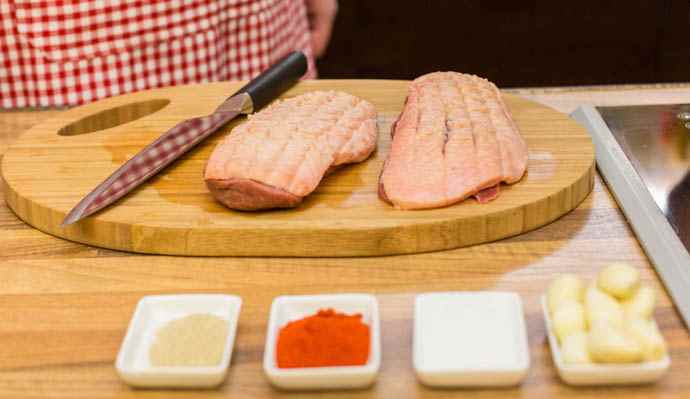 2 piept de rață, sare, piper