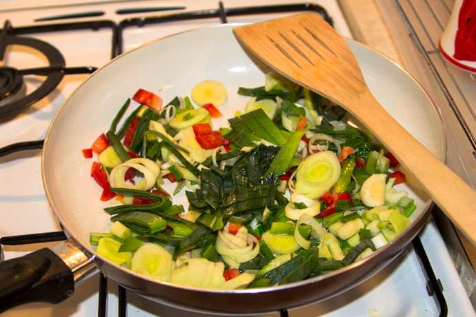 2 fire ceapa verde, 2 linguri praz, 1/2 ardei california, 2 ciuperci, sare, piper, 1 cana orez Jazmin, ½ dl vin alb, 3 linguri parmezan