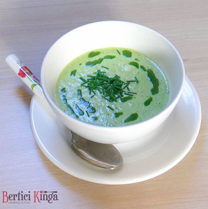 Varza și cartofii se fierb în apă cât să le acopere, după care se adaugă crème fraiche, mărar și restul condimentelor. Se omogenizează cu mixerul.
